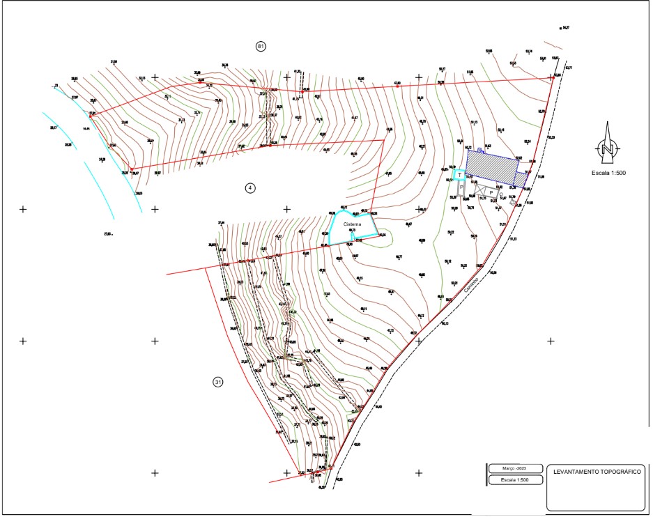 A existencia de uma ruina no terreno permite a construcao de um turismo rural, ate 2000 m2, outro tipo de servicos de 500 m2, ou uma propriedade residencial com ate 300 m2.